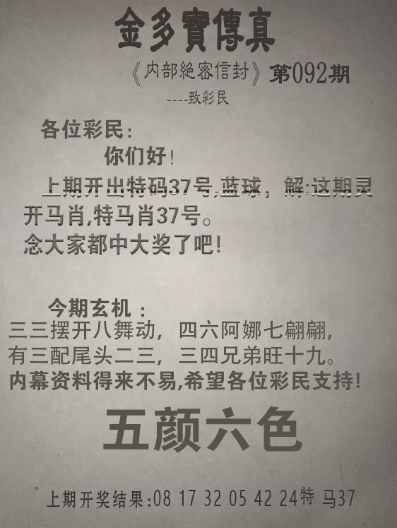 092期: 澳门六合彩 『金多宝传真』已更新